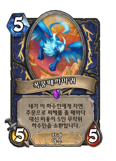 내가 이 하수인에게 자연 주문으로 피해를 줄 때마다 대신 비용이 5인 무작위 하수인을 소환합니다.