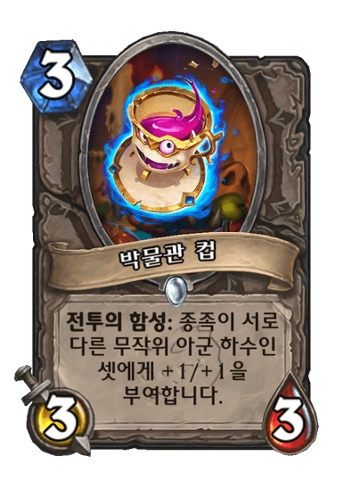 종족이 서로 다른 무작위 아군 하수인 셋에게 +1/+1을 부여합니다.