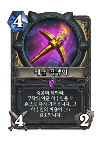 죽음의 메아리: 무작위 아군 하수인을 내 손으로 다시 가져옵니다. 그 하수인의 비용이 (2) 감소합니다.