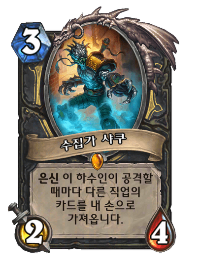 이 하수인이 공격할 때마다 다른 직업의 카드를 내 손으로 가져옵니다.