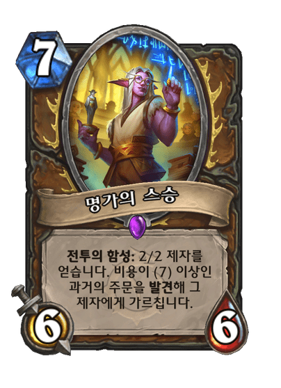 전투의 함성: 2/2 제자를 얻습니다. 비용이 (7) 이상인 과거의 주문을 발견해 그 제자에게 가르칩니다.