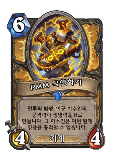 전투의 함성: 아군 하수인의 공격력과 생명력을 8로 만듭니다. 그 하수인은 이번 턴에 영웅을 공격할 수 없습니다.