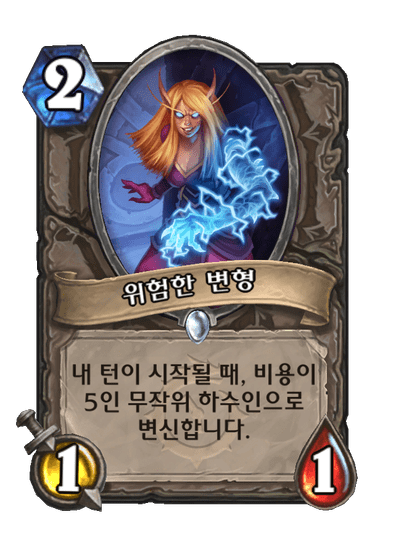 내 턴이 시작될 때, 비용이 5인 무작위 하수인으로 변신합니다.