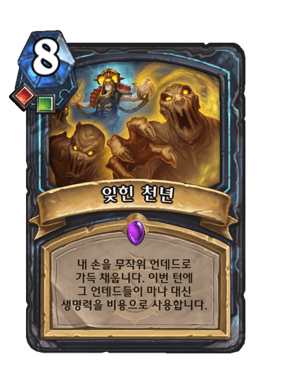 내 손을 무작위 언데드로 가득 채웁니다. 이번 턴에 그 언데드들이 마나 대신 생명력을 비용으로 사용합니다.