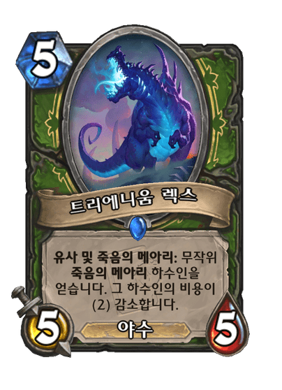 | 효과 | 유사 및 죽음의 메아리: 무작위 죽음의 메아리 하수인을 얻습니다. 그 하수인의 비용이 (2) 감소합니다. | ||