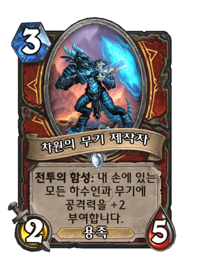 내 손에 있는 모든 하수인과 무기에 공격력을 +2 부여합니다.