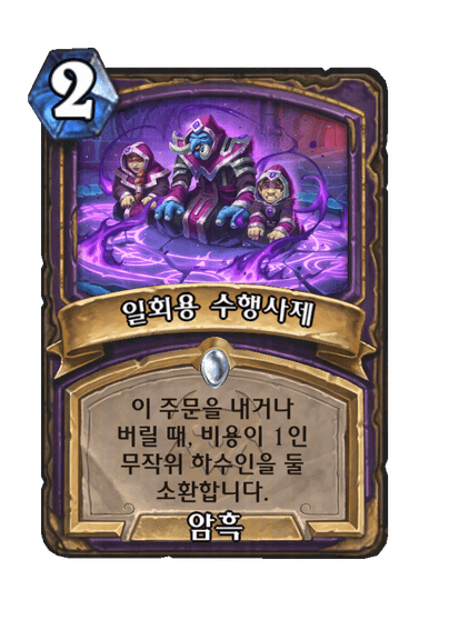 이 주문을 내거나 버릴 때, 비용이 1인 무작위 하수인을 둘 소환합니다.