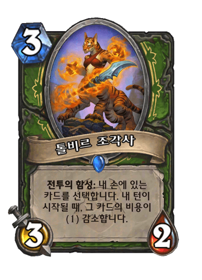 전투의 함성: 내 손에 있는 카드를 선택합니다. 내 턴이 시작될 때, 그 카드의 비용이 (1) 감소합니다.