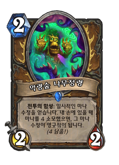 전투의 함성: 일시적인 마나 수정을 얻습니다. 내 손에 있을 때 마나를 4 소모했으면, 그 마나 수정이 영구적이 됩니다. (4 남음!)