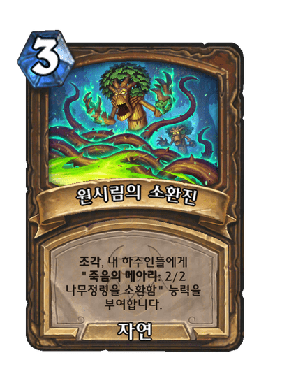 산산조각 2/2 나무정령을 둘 소환합니다. 내 하수인들에게 "죽음의 메아리: 2/2 나무정령 소환"을 부여합니다.