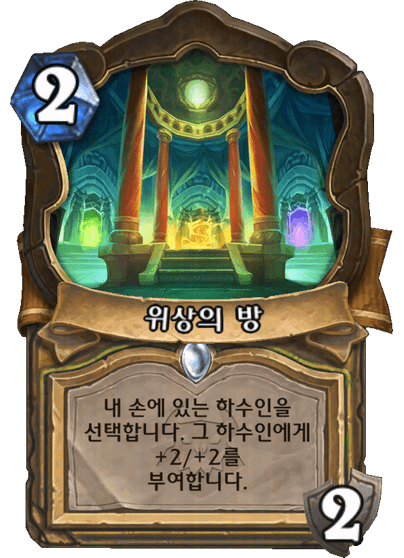 내 손에 있는 하수인을 선택합니다. 그 하수인에게 +2/+2를 부여합니다.