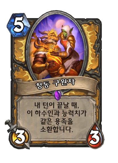 내 턴이 끝날 때, 이 하수인과 능력치가 같은 용족을 소환합니다.