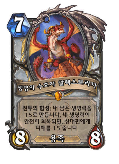 전투의 함성: 내 남은 생명력을 15로 만듭니다. 내 생명력이 완전히 회복되면, 상대편에게 피해를 15 줍니다.