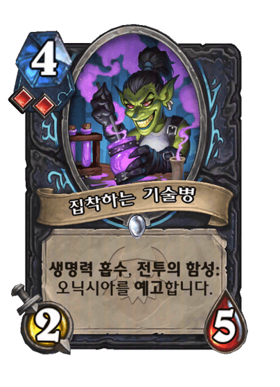 | 효과 | 거수 +2, 내 영웅이 내 턴에 생명력을 잃을 때마다, 생명력을 잃지 않고 그 대신 그만큼 최대 생명력을 얻습니다. | ||
