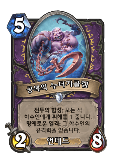 전투의 함성: 모든 적 하수인에게 피해를 1 줍니다. 명예로운 일격: 그 하수인의 공격력을 얻습니다.
