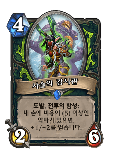 도발, 전투의 함성: 내 손에 비용이 (5) 이상인 악마가 있으면, +1/+2를 얻습니다.