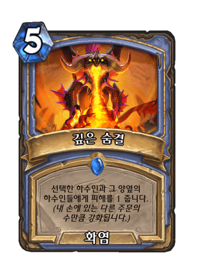 선택한 하수인과 그 양옆의 하수인들에게 피해를 줍니다. (내 손에 있는 다른 주문의 수만큼 강화됩니다.)