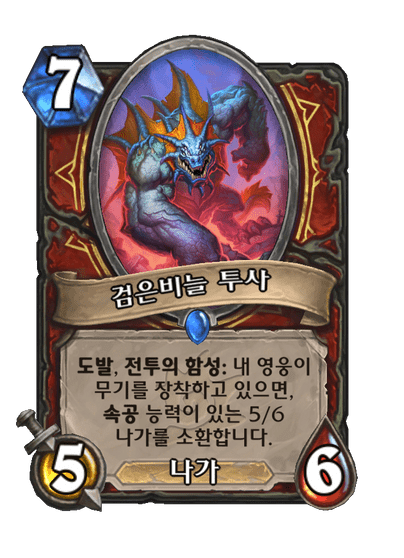 도발, 전투의 함성: 내 영웅이 무기를 장착하고 있으면, 속공 능력이 있는 5/6 나가를 소환합니다.