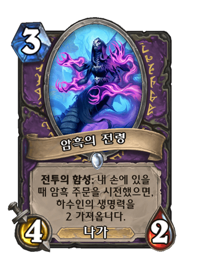 전투의 함성: 내 손에 있을 때 암흑 주문을 시전했으면, 하수인의 생명력을 2 가져옵니다.