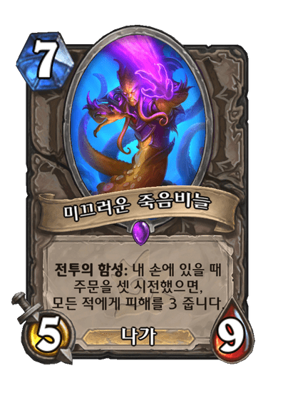 전투의 함성: 내 손에 있을 때 주문을 셋 시전했으면, 모든 적에게 피해를 3 줍니다. ( 남음!)(달성!)