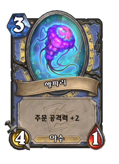 | 효과 | 하수인을 주문 공격력 +2가 있는 4/1 해파리로 변신시킵니다. | ||