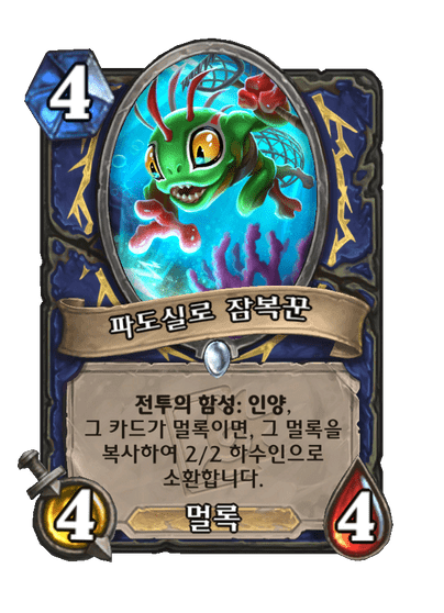 전투의 함성:인양, 그 카드가 멀록이면, 그 멀록을 복사하여 2/2 하수인으로 소환합니다.