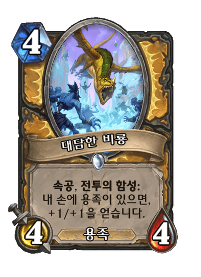 내 손에 용족이 있으면, +1/+1을 얻습니다.