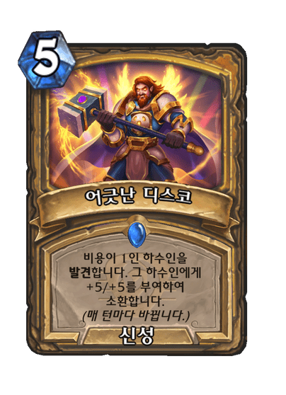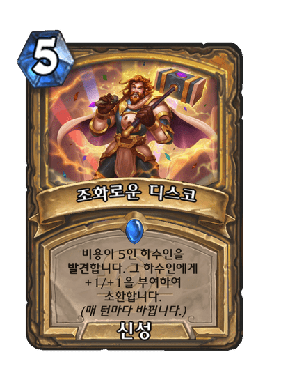 비용이 5인 하수인을 발견합니다. 그 하수인에게 +1/+1을 부여하여 소환합니다. (매 턴마다 바뀝니다.)