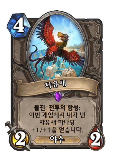 이번 게임에서 내가 낸 자유새 하나당 +1/+1을 얻습니다.