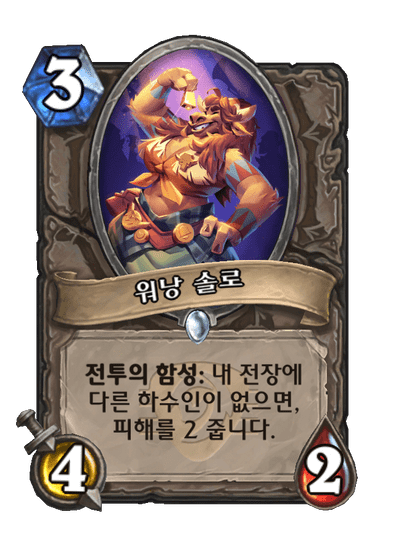 내 전장에 다른 하수인이 없으면, 피해를 2 줍니다.