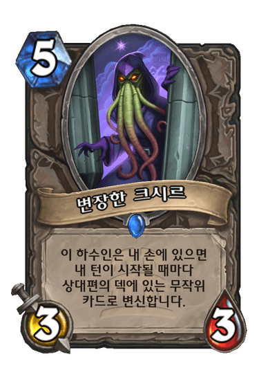 이 하수인은 내 손에 있으면 내 턴이 시작될 때마다 상대편의 덱에 있는 무작위 카드로 변신합니다.