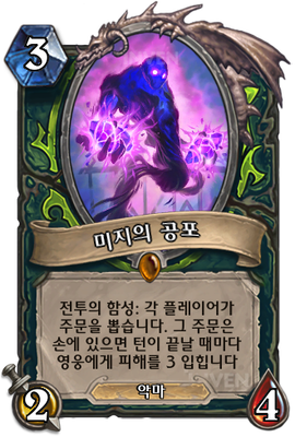 전투의 함성: 각 플레이어가 주문을 뽑습니다. 그 주문은 손에 있으면 턴이 끝날 때마다 영웅에게 피해를 3 입힙니다
