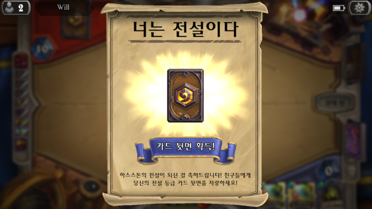 안녕하세요 여기글 처음써보네요 ㅎㅎ 하스스톤 하면서 첫전설이라 굉장히기쁩니다 15급부터노루만계속했구요
