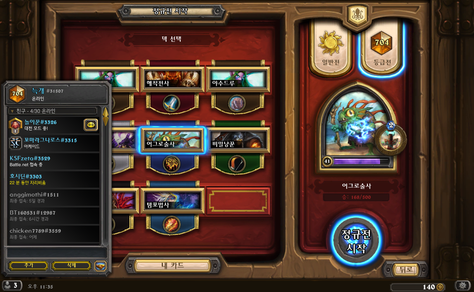 다음으로 방밀전사가 있는데 현재 재가 전설을 올라갈때