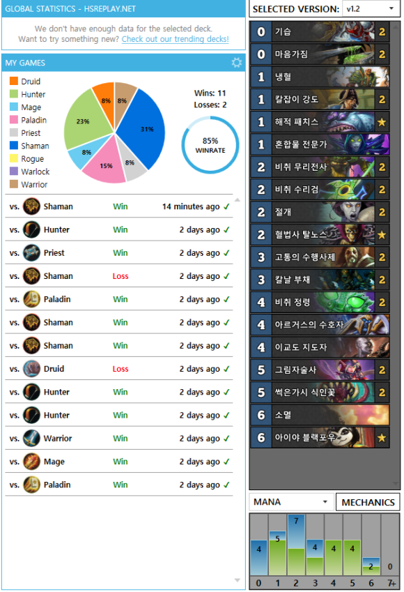 인벤 카피 덱인데 몇가지만 커스텀 해봤습니다 아직 미완성 덱이지만 승률이 제법 잘나오네요