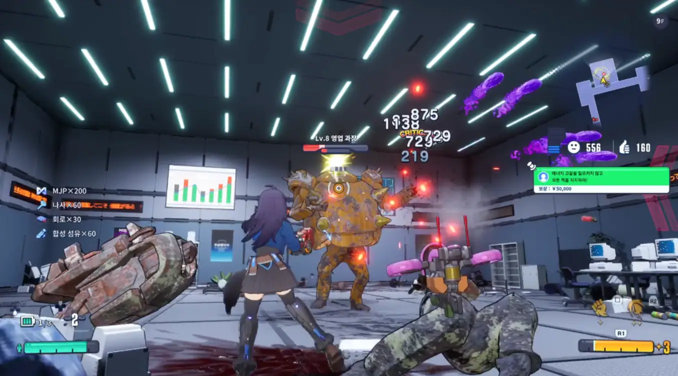 Q. 사이보그 여고생 vs 거대 블랙 기업'이라는 독특한 설정을 떠올리게 된 계기는 무엇입니까? 현대 사회의 어떤 측면에서 영감을 얻었는지, 그리고 이 설정을 통해 유저들에게 어떤 메시지나 재미를 전달하고 싶으신가요?