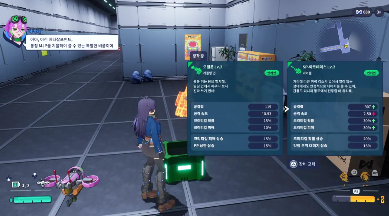 그런 만큼 두 캐릭터의 초기 성능은 차이가 없고, 플레이어게 게임을 진행하면서 어떻게 강화(개조)하느냐에 따라 차이가 생깁니다. 캐릭터보다는 플레이어에게 달린 것이라고 볼 수 있습니다.