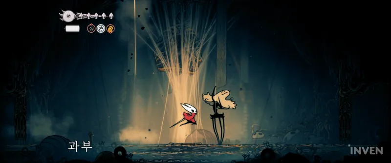 전작인 할로우 나이트의 경우 빈말로도 스토리가 친절한 게임은 아니었습니다. 은유와 비유로 점철됐다거나 하는 건 아니지만, 세계관과 스토리를 파악하려면 온갖 NPC들을 만나서 그들과 대화하고 숨겨진 비밀들을 파헤쳐야 했죠. 그럼에도 단번에 이해하기에는 다소 어려움이 있었습니다. 애초부터 친절하지 않았으니까요. 그리고 여기에는 한 가지 더 장애물이 존재합니다. 바로 전작의 주인공 기사의 존재입니다. 스포일러가 될 수 있는 부분을 제외하고 간단하게 말하자면, 전작에서 기사는 한마디도 안 합니다. 그렇기에 NPC들도 그저 혼잣말에 가까운 얘기를 할 뿐이죠. 대화가 아니니 정보 역시 일방통행으로 전달받는 게 전부이고 이러니 스토리가 다소 난해하게 느껴질 수밖에 없는 겁니다. 플레이어 입장에서 궁금한 점들을 기사의 입을 통해 묻고 그것에 답하는 게 아니라 그저 정보의 나열이 전부니까요.
