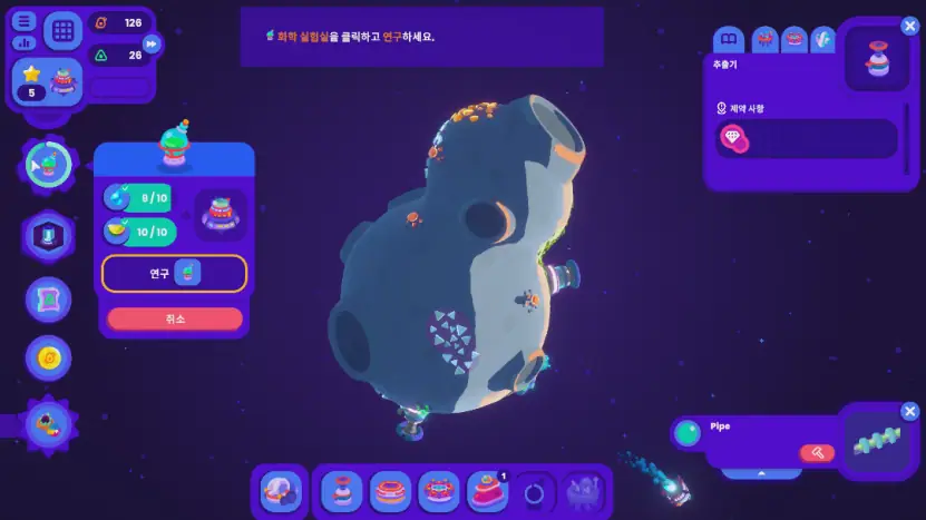 오히려 건설 게임을 몇 번 해본 사람이라면 '스타버드'를 처음 했을 때 다소 낯설 확률이 있긴 합니다. UI는 다소 분산된 편에, 이 장르 중 글자가 이 정도로 없는 게임은 드물거든요. 하지만 큼직한 아이콘들과 그래프로 일목요연하게 시각화한 UI 버튼, 리스크 없이 차근차근 퀘스트를 풀면서 테크트리를 발전시킬 수 있는 친절한 구성이라 금방 익숙해집니다. 특히 소행성에 짓는 시설 말고 우주기지에 짓는 시설은 퀘스트를 수주해서 재료만 전달하면 알아서 착착 수량대로 짓기 때문에, 소행성 개척과 자원 관리 그리고 물류에만 신경 써도 무방했습니다.