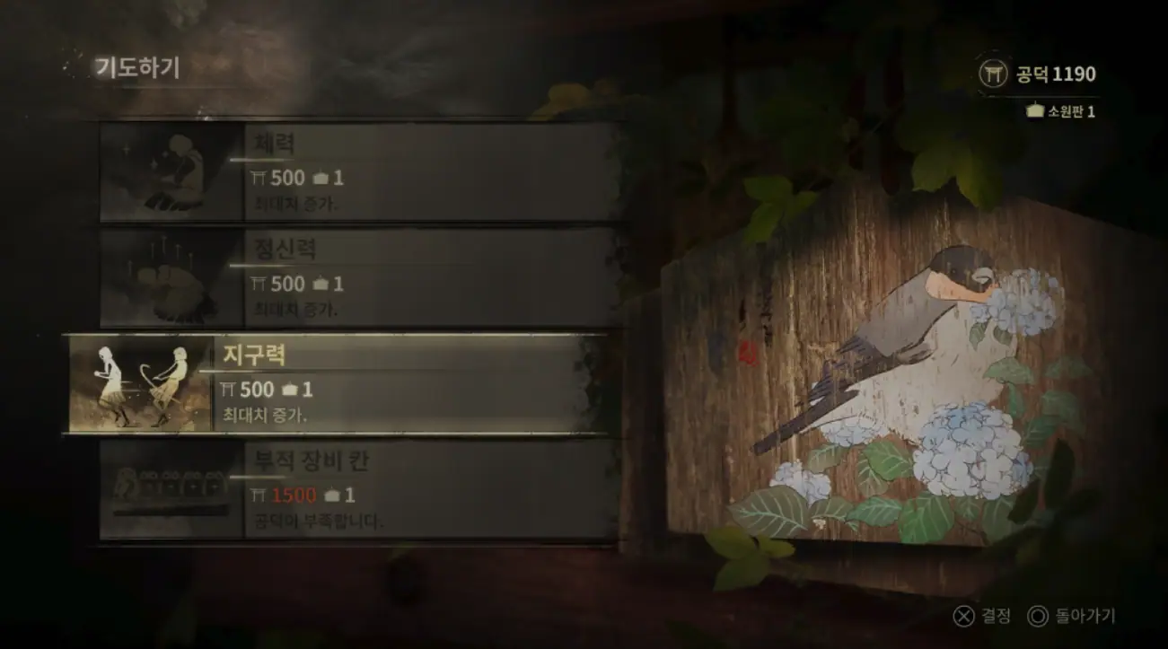 중반 이후로 나아가면 여우 신사 공간에서 히나코가 '짐승의 팔'을 얻게 되는데, 거기서부터는 게임플레이가 또 한 번 급격한 변화를 맞이한다. 강력한 공격과 함께, 적의 혼을 흡수해 각성(L3+R3 동시 입력)까지 할 수 있는 존재로 거듭나게 되는 것. 이렇다보니 여우 신사 구간에서는 적과의 전투에 대한 피로도는 줄어들지만, 그만큼 퍼즐을 풀기 위한 동선에 더욱 집중한다는 느낌을 받을 수 있었다.