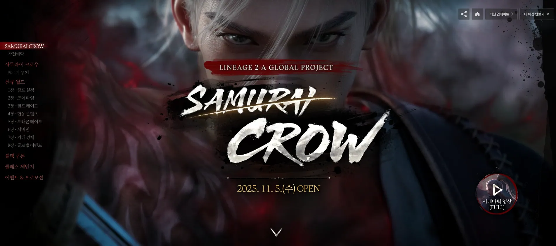 엔씨(NC)는 오늘부터 ‘사무라이 크로우’ 사전 예약을 시작한다. 참여자는 ‘크로우 귀걸이’, ‘봉인된 여우 목걸이’, ‘크로우 지원 상자’ 등을 받는다. 기존 리니지2 이용자에게도 11월 5일 △파괴된 장비를 복구할 수 있는 ‘블랙 쿠폰’ △캐릭터 클래스를 변경할 수 있는 ‘클래스 체인지’ 등 혜택을 제공한다.
