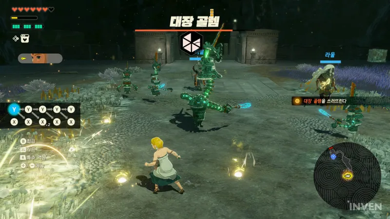 이번 시연에서는 젤다, 라울, 미넬 세 명만 체험할 수 있었지만, 여기에 초대 현자 4명, 링크를 떠올리게 하는 인간형 골렘, 코르그 검사까지 더해져 조합에 따라 다양한 싱크 스트라이크를 즐길 수 있을 것으로 기대를 모았습니다.