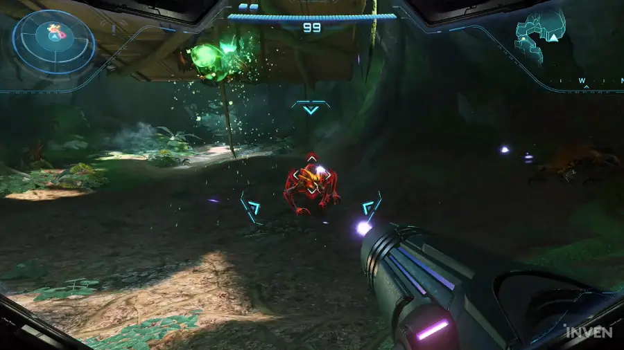 시리즈의 상징인 스캔 역시 지금 시점에서는 양날의 검이다. 탐험의 밀도를 높여주는 장치임은 분명하지만, 메트로이드 프라임 시리즈에서는 스캔해야 할 대상이 지나치게 많다. 진행에 필수적인 오브젝트와 단순 정보 수집용 오브젝트가 시각적으로 명확히 구분되지 않는 점이 피로도를 높인다. 결국 눈에 보이는 모든 것을 일단 스캔하고 봐야 하는데, 이 과정에서 소요되는 시간이 만만치 않다. 오랜 팬들에게는 익숙한 과정일지 몰라도, 처음 보는 적을 마주하면 일일이 스캔해야 하니 액션 어드벤처 특유의 속도감과 맥이 끊기는 것은 부인할 수 없는 사실이다.