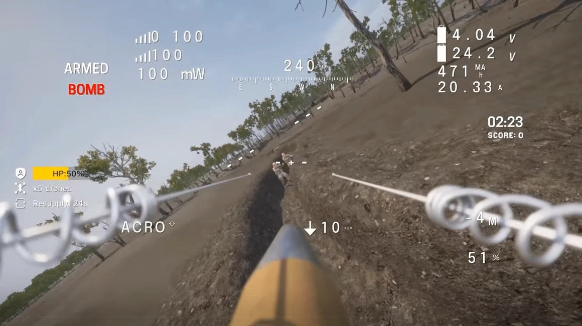 대중적인 사용에 적합하도록 지도 시스템을 간소화하고, 임무 콘텐츠를 줄였으며, 일부 옵션을 잠그는 등의 조정을 거쳤습니다. 또한 이는 새로운 종류의 게임플레이이기도 합니다. 예를 들어, 배틀그라운드 모드에서는 플레이어가 FPV 드론을 사용해 진지를 방어할 수 있으며, 향후 업데이트에는 분대 기반 목표가 포함된 멀티플레이어 임무도 추가될 예정입니다.