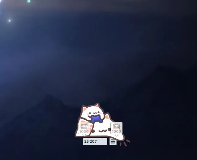 호기심이 발동하여 게임을 설치해봤습니다. 그랬더니 작업 표시줄 위에 작은 고양이가 한 마리 나타납니다. 기능은 단순합니다. 마우스를 클릭하거나 키보드를 두드릴 때마다 화면 속의 고양이가 화면을 두드립니다.
