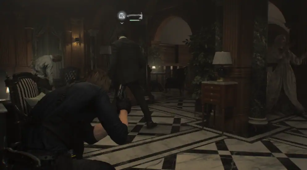 그 외에도 이번 작품의 좀비들은 소방도끼와 같은 무기를 들고 다니는 경우가 종종 있고, 레온은 그런 무기를 사용해 좀비를 처단할 수 있다. 다채로운 체술과 더해지며 액션이 한층 업그레이됐다는 느낌도 충분히 받을 수 있다.