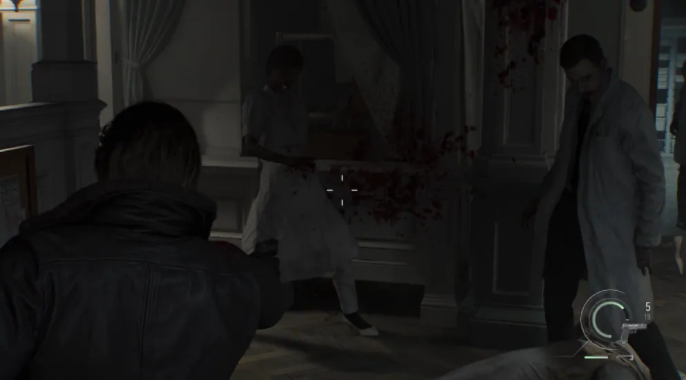 그레이스 파트 플레이를 시작하자마자 마주치는 요리사 좀비가 있다. 딱 봐도 다른 좀비보다 덩치가 커 죽이지 쉽지 않아 보이는 녀석이다. 그런 녀석도 레퀴엠 한 발만 있다면 즉시 행동불능에 빠뜨릴 수 있고, 그 틈을 타 목에 용혈성 주입기를 꽂으면 혼 사방에 흩날리는 피를 감상할 수 있다.