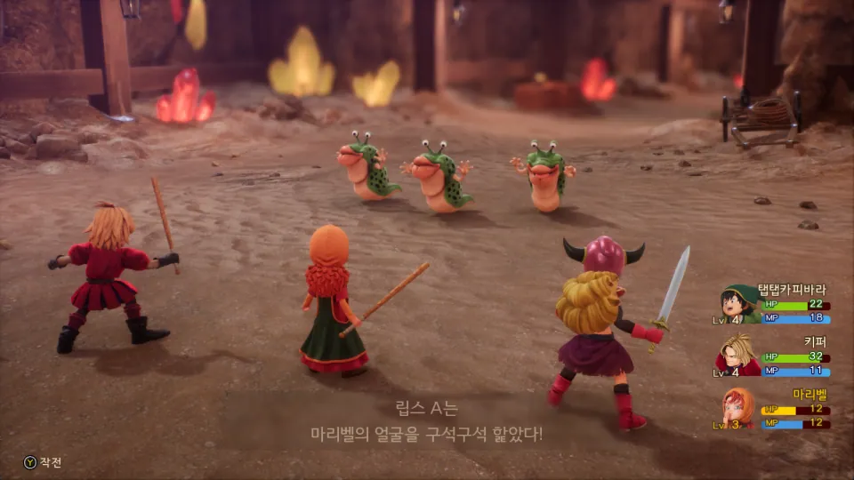 "첫 슬라임을 만나기 위해 3시간 동안 퍼즐만 풀어야 했다" 같은 이야기는 시작 전부터 겁을 주기에 충분했죠. 하지만 다행스럽게도, 이번 작품에서 그 '통곡의 벽'은 존재하지 않았습니다. 딱 "이제 슬슬 전투 좀 해보고 싶은데?"라는 생각이 들 찰나, 기다렸다는 듯 첫 슬라임이 등장했으니까요.