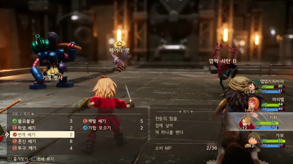 플레이하는 내내 "아, 여기서 적의 공격 타이밍에 맞춰 버튼을 눌러 패링을 하거나, 공격 시 QTE(버튼 액션)로 추가 피해를 줄 수 있었다면 어땠을까?" 하는 아쉬움이 짙게 남았습니다. 이미 다양한 현대 명작들이 증명했듯, 턴제에도 긴박감을 불어넣을 방법은 충분히 존재합니다. 위기감도, 손끝의 짜릿함도 없는 전투. 도파민을 좇는 2026년의 게이머들에게 이 '슴슴한 맛'은 견디기 어려웠습니다.