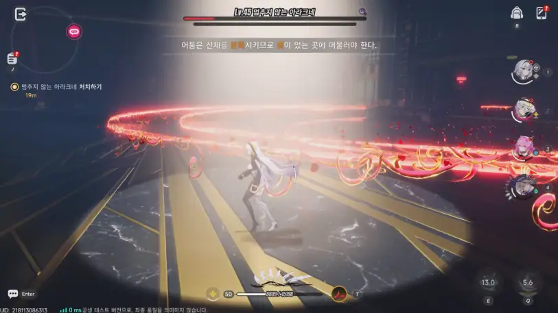 물론 '이환'이 현 단계에서 100% 완벽하다고 하기는 어렵긴 합니다. 앞서 속성 연계가 중요하다고 한 만큼 캐릭터의 풀과 조합도 중요한데, 아직 만족스럽게 갖춰지지 않은 상태죠. 그런 상황이니 뽑기 부담을 기존 BM 대비 좀 줄이는 식으로 1차로 조치를 취한 느낌이었습니다. 카레이싱 등 각 콘텐츠들이 코어하게 파고들기엔 깊이가 얕다는 생각도 들었죠. 중후반에는 대화도 중간중간 스크립트 코드가 그대로 노출되는 일도 잦았고, 복잡하게 공간이 휙휙 바뀌는 '이환'의 특성상 중간중간 일부 오브젝트가 나오지 않는 버그도 있었죠.